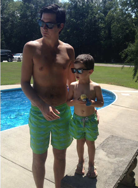 It's become a tradition around here. Every year around Father's Day, my boys get matching swim trunks from Tom & Teddy to wear. It started in 2013 when Jack was only 3. In 2014, I was pregnant with Dylan and in 2015 when he was old enough, he got to match his daddy and older brother.
